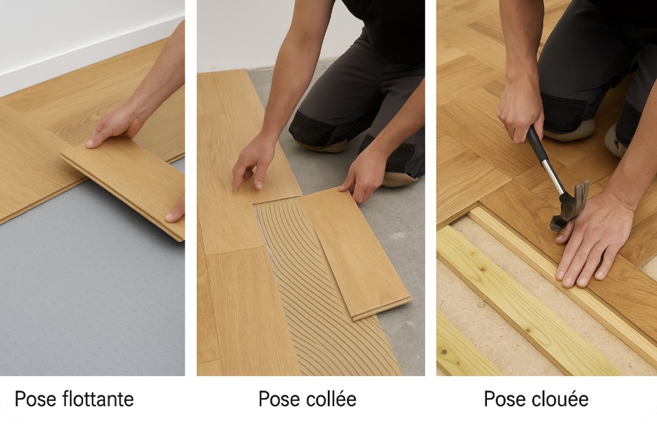 Les méthodes de pose d’un parquet varient selon le type de revêtement et le rendu souhaité.