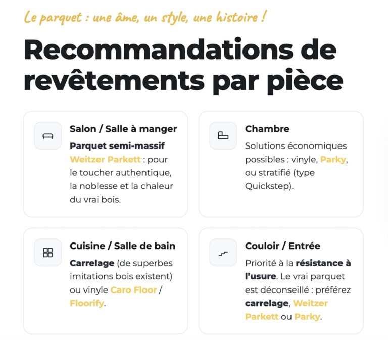 Un parquet de qualité valorise significativement votre bien immobilier. C’est un atout de vente indéniable qui renforce l’attrait de votre propriété