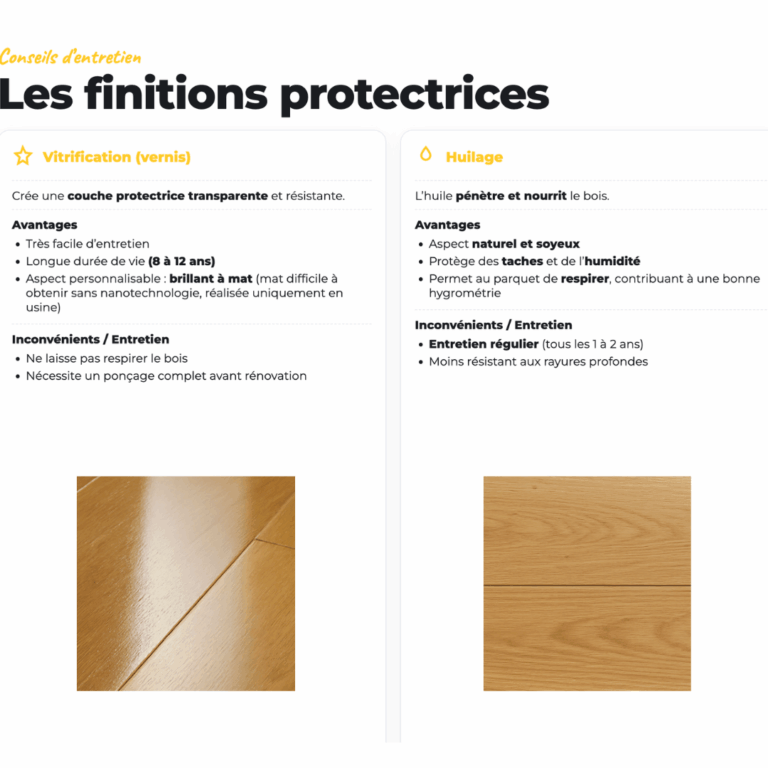 L’un des grands atouts du parquet massif et contrecollé est sa capacité de rénovation. Un ponçage professionnel suivi d’une nouvelle finition peut effacer des années d’usure et redonner un aspect neuf à votre sol.